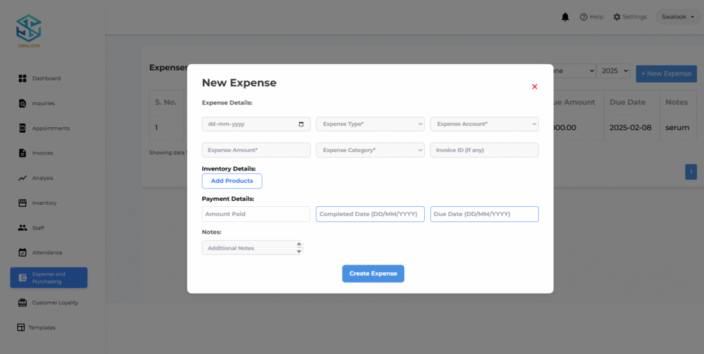Smart Salon Expense & Purchasing Software with Swalook